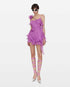 Black high-low dress in stretch, mesh fabrication