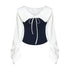 16DEWS 16D25326 Navy collar contrasting color patchwork top