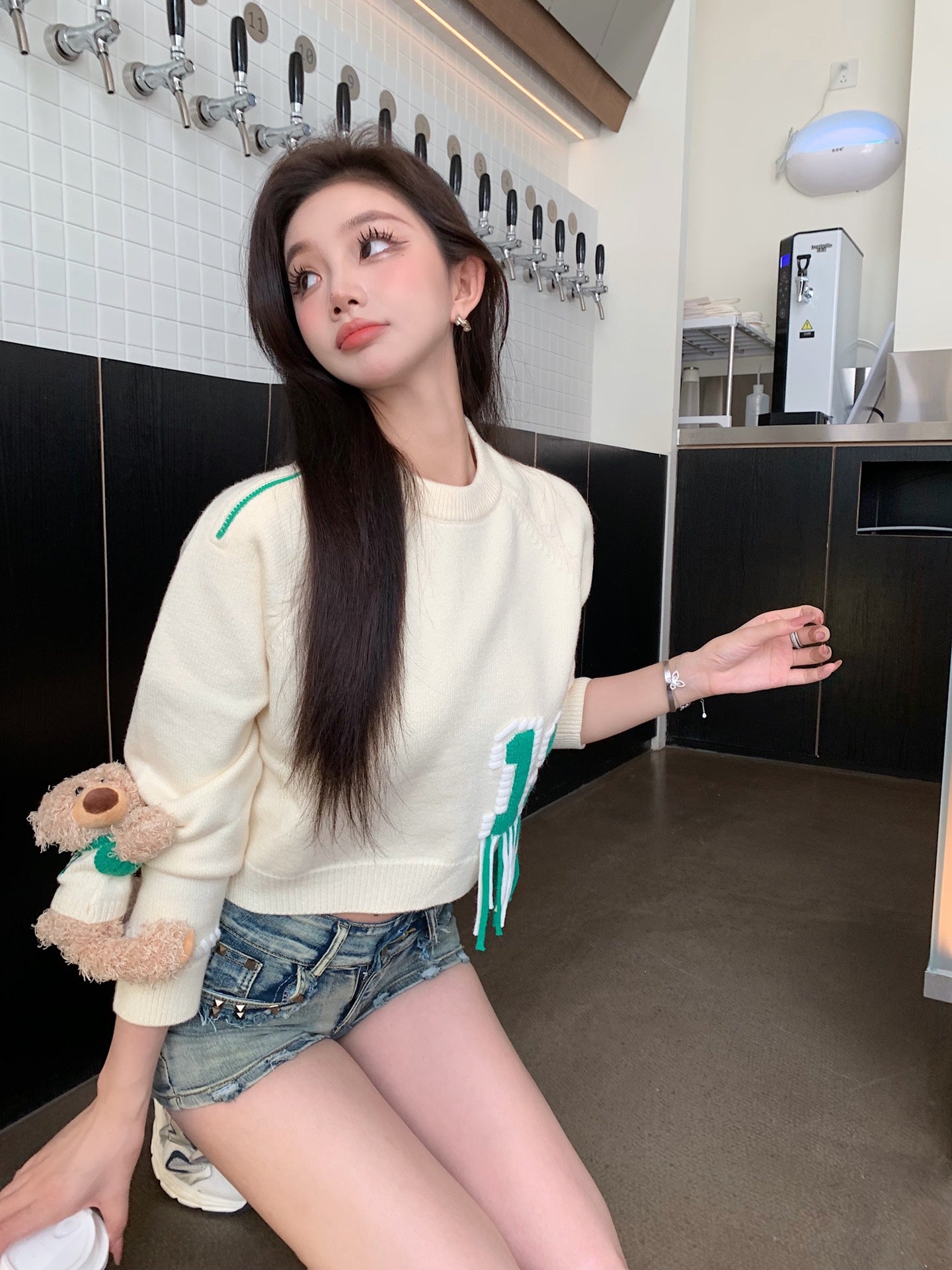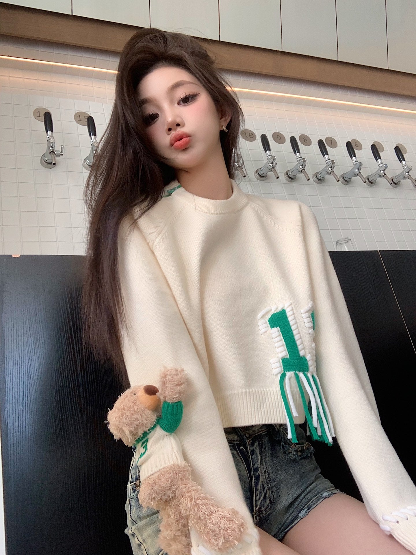 13DE MARZO Bear Weave Logo Short Sweater