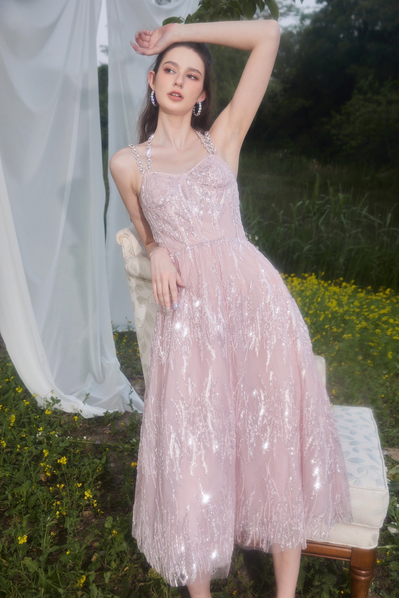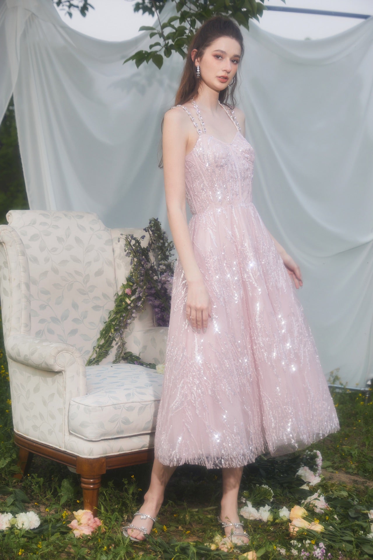 wardrobes by chen Sale pink meteor diamond chain midi dress