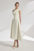 BYDENIO Elan Two-tone Off-shoulder Midi Dress