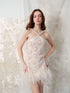 Wardrobes by Chen pearl slip dress with feathered hemline