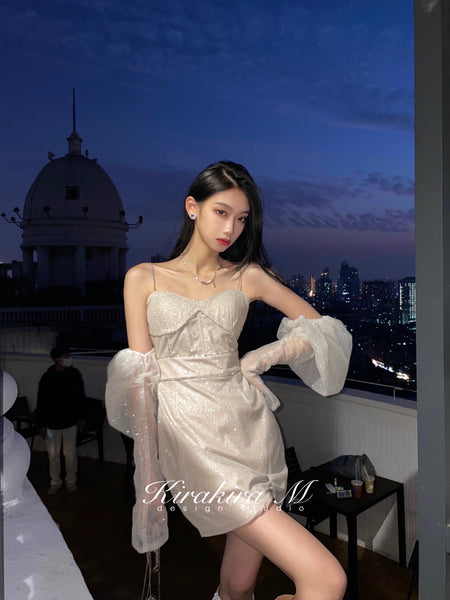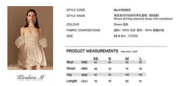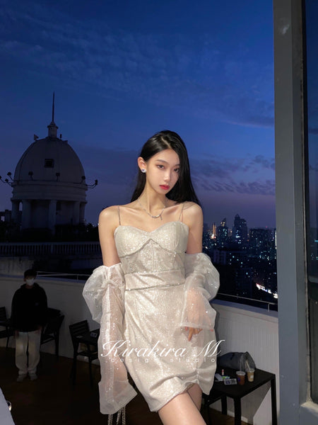 Kirakira.M Silvery Shinning Diamond Dress With Oversleeve