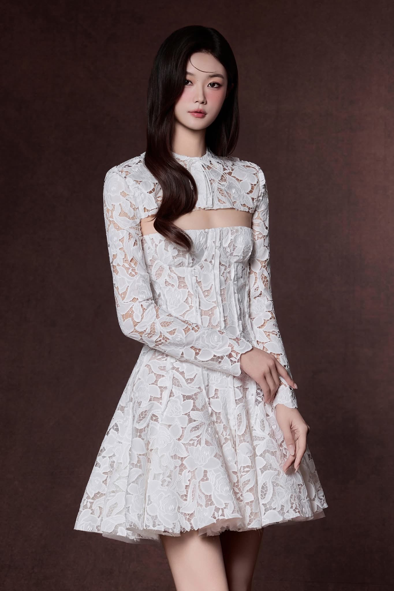 Raffiné HYDRANGEA FLORAL LACE CROPPED TOP & CIRCLE DRESS