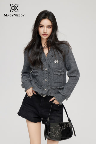 MacyMccoy Fringed Knit Cardigan(2color)