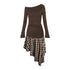 16DEWS 16D25369 Color blocking plaid spliced waist cinching dress