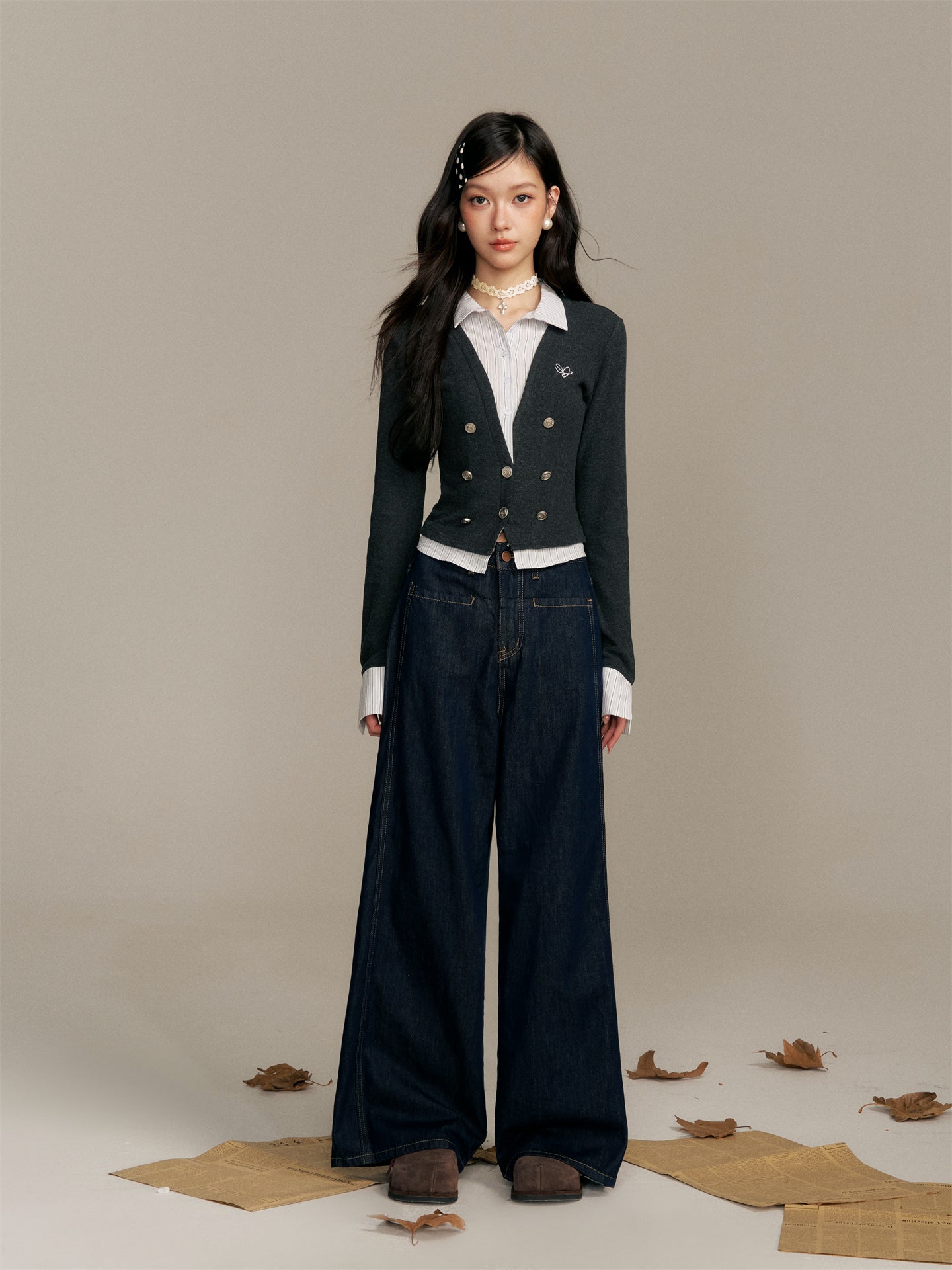 16DEWS 16D25376 Color blocking splicing fake two-piece slim fit top