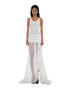 A tank dress featuring a transparent bodice and a bold, ruffled skirt with dramatic flair.