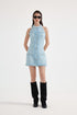 Kingwen Halter neck tweed nail bead waist pinching dress