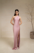 The silk and chiffon dress design is flexible and inspired by the image of a goddess. The chiffon part at the neck can be flexibly and creatively changed.