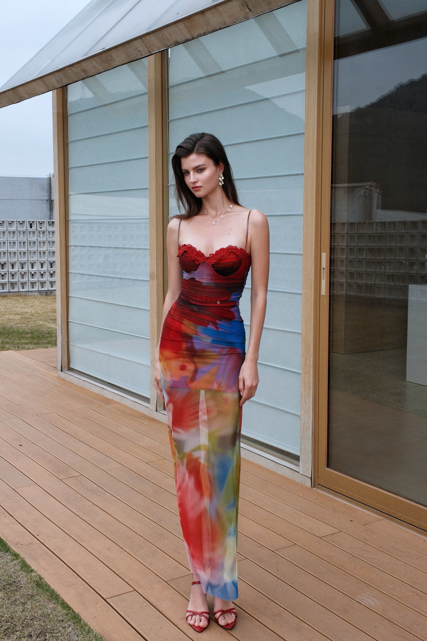 SHEERLUCK SLLYQ25225 Holiday style fishbone print slim fit dress (3color)