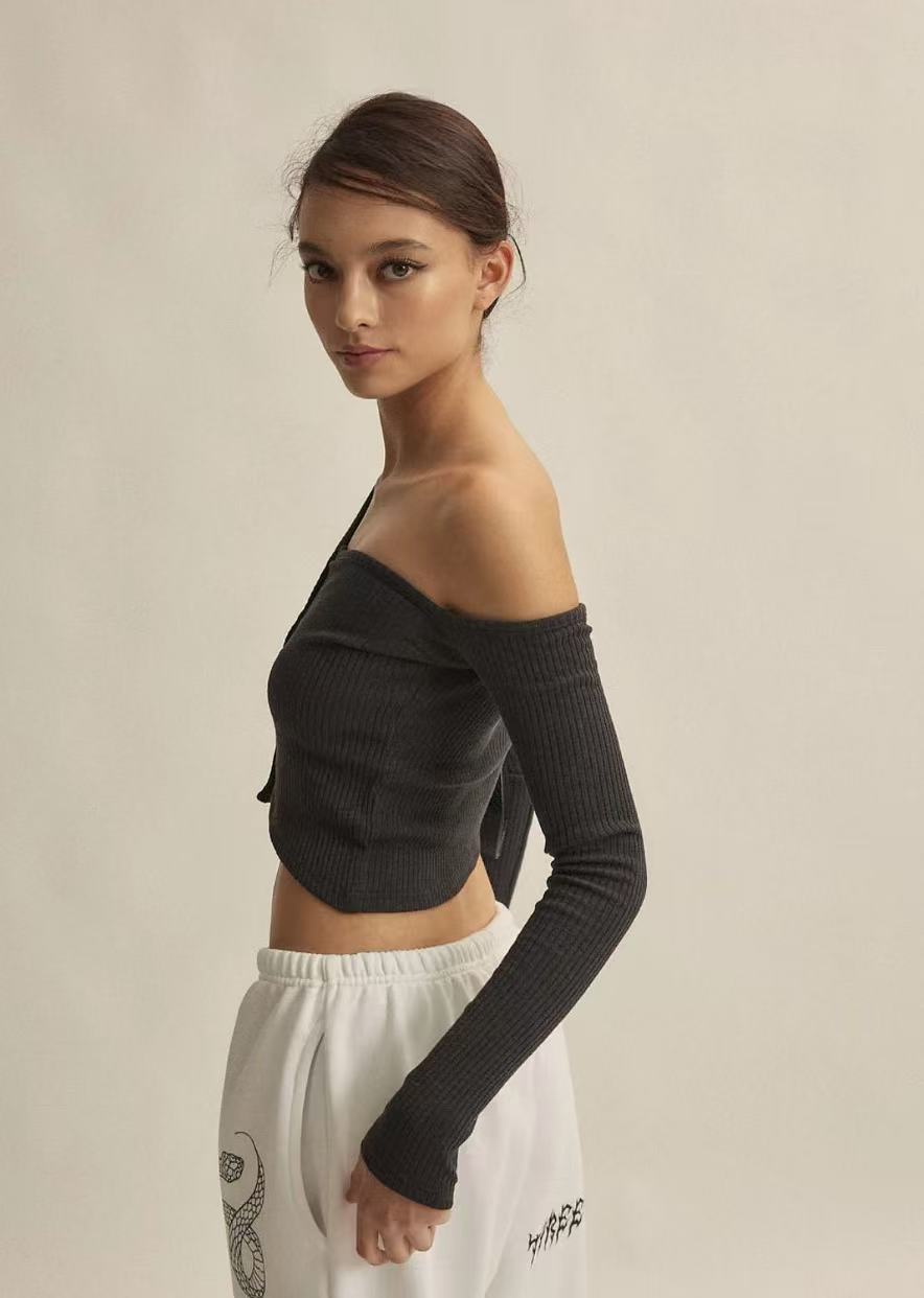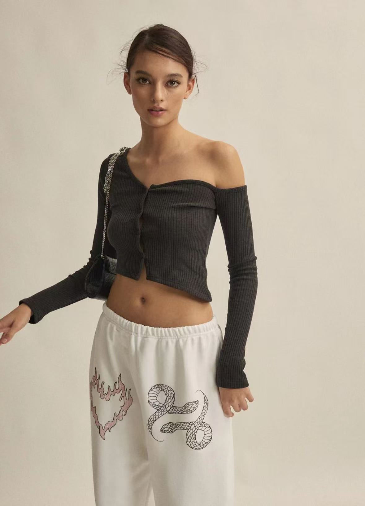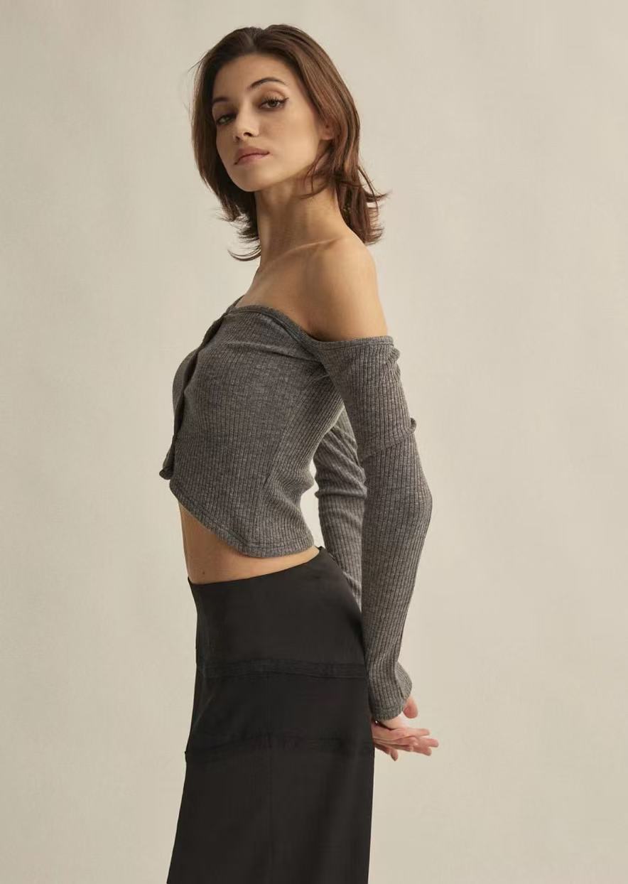 Threetimes One-shoulder button tee (4color)