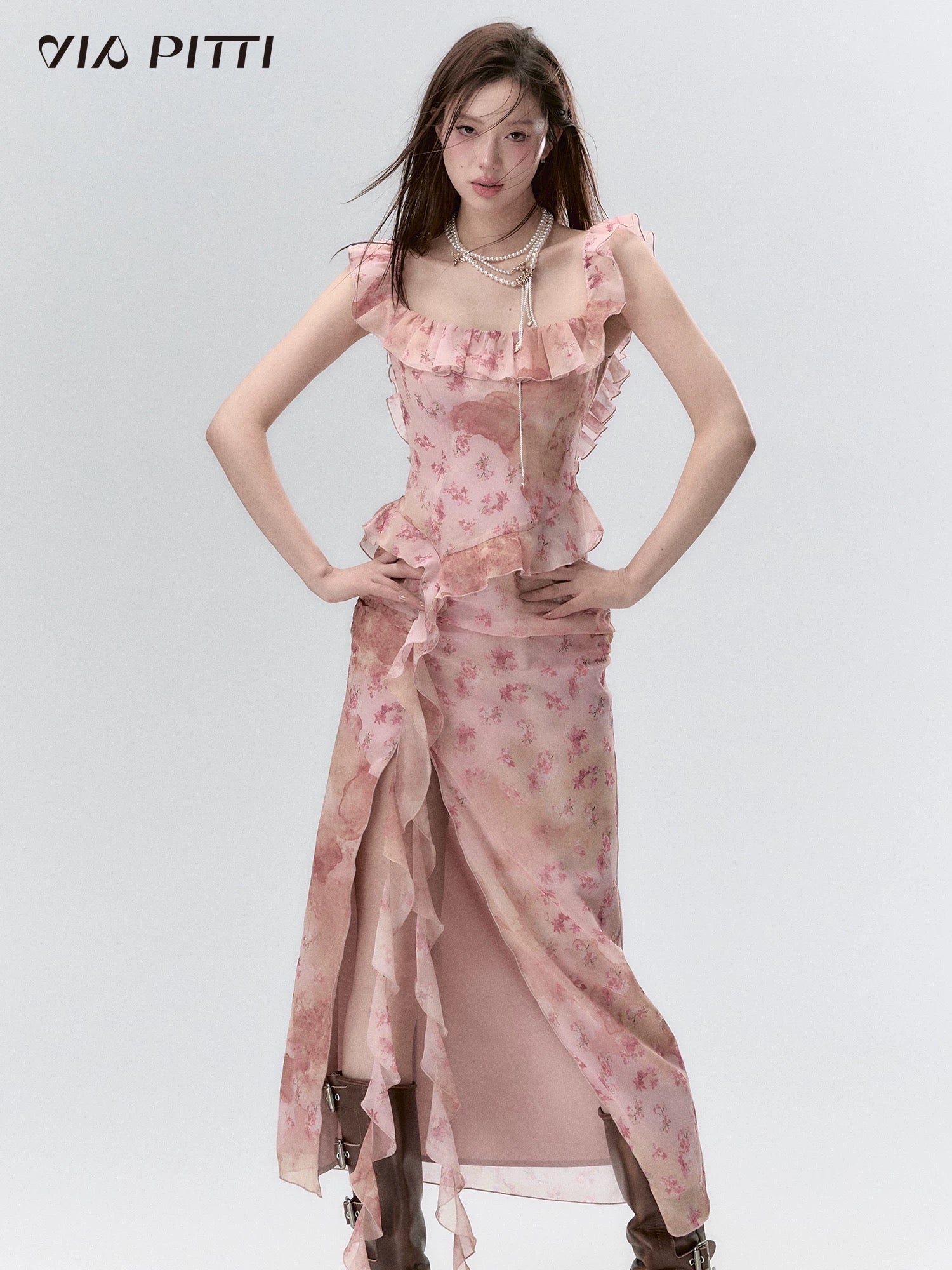 VIA PITTI V24AD049 Pink Split Dress