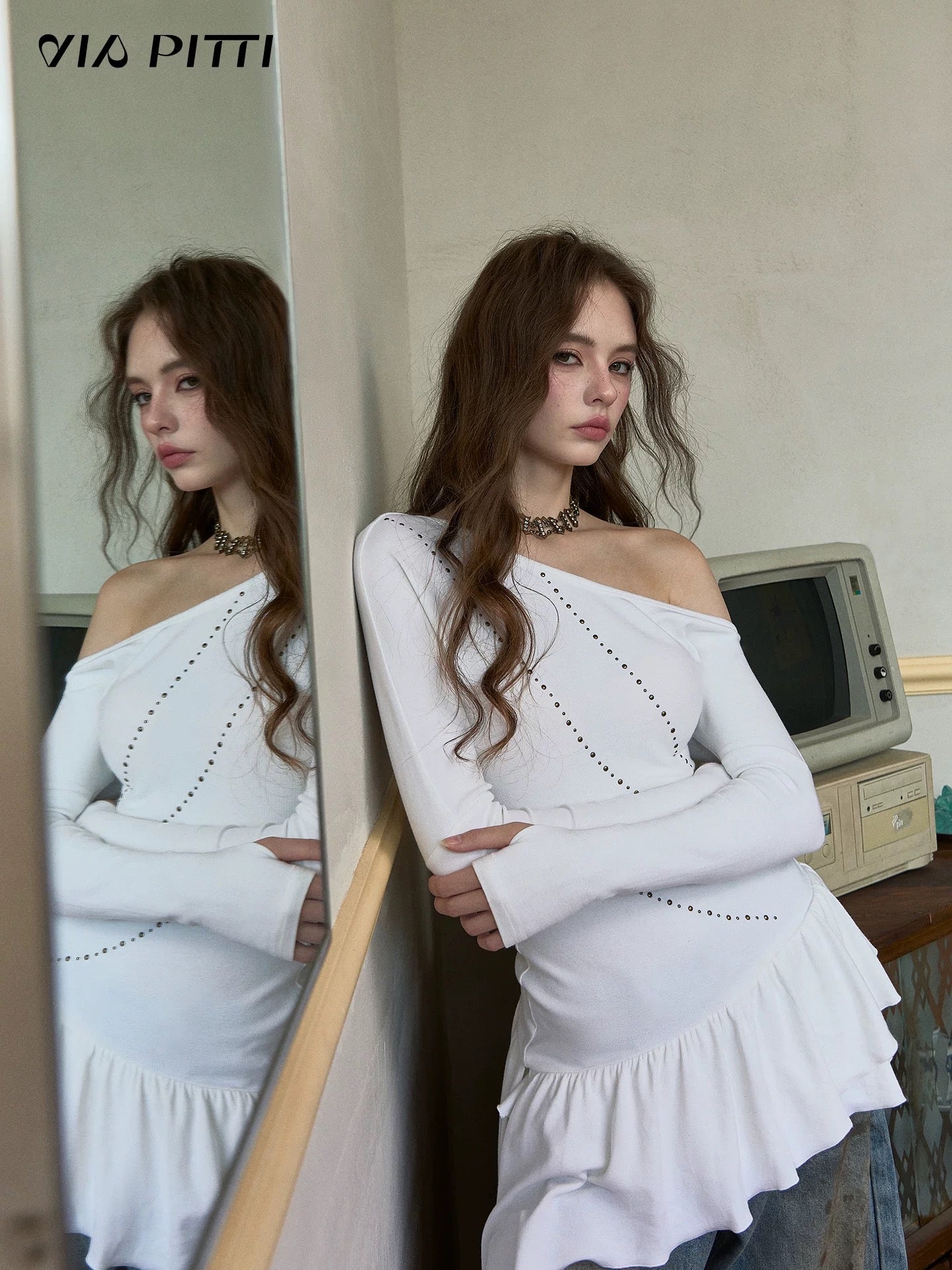 VIA PITTI VIACD549 Off shoulder rivet slim fit top