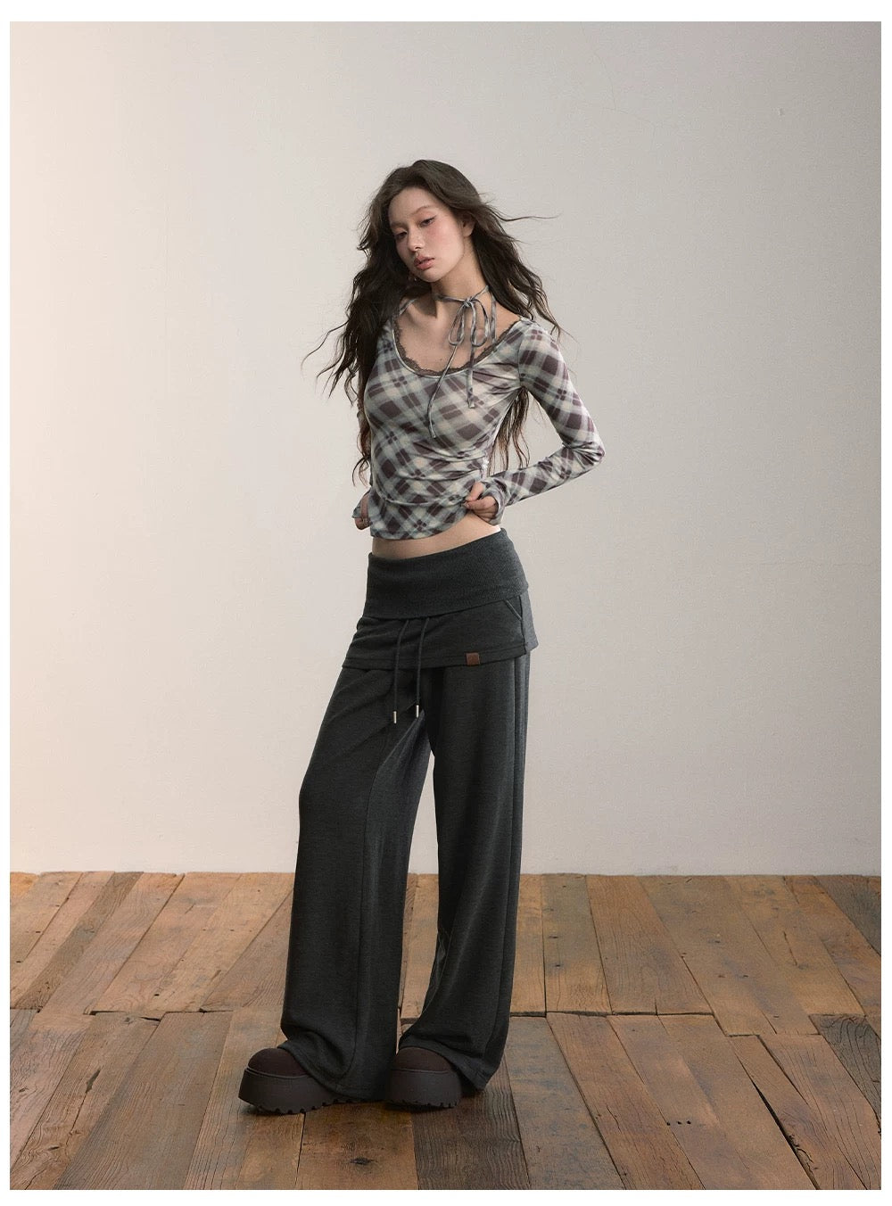 VIA PITTI VIACTP532 Hanging neck tie plaid long sleeved T-shirt