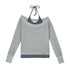 16DEWS 16D25307&16D25308 Fake two-piece spliced striped neck hanging top + pants set