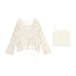 16DEWS 16D25287&16D2528 Knitted hollow jacquard pullover (with camisole) + Brown denim cropped pants