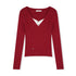 16DEWS 16D25514 Contrast V-neck fake two pieces knitting knitwear