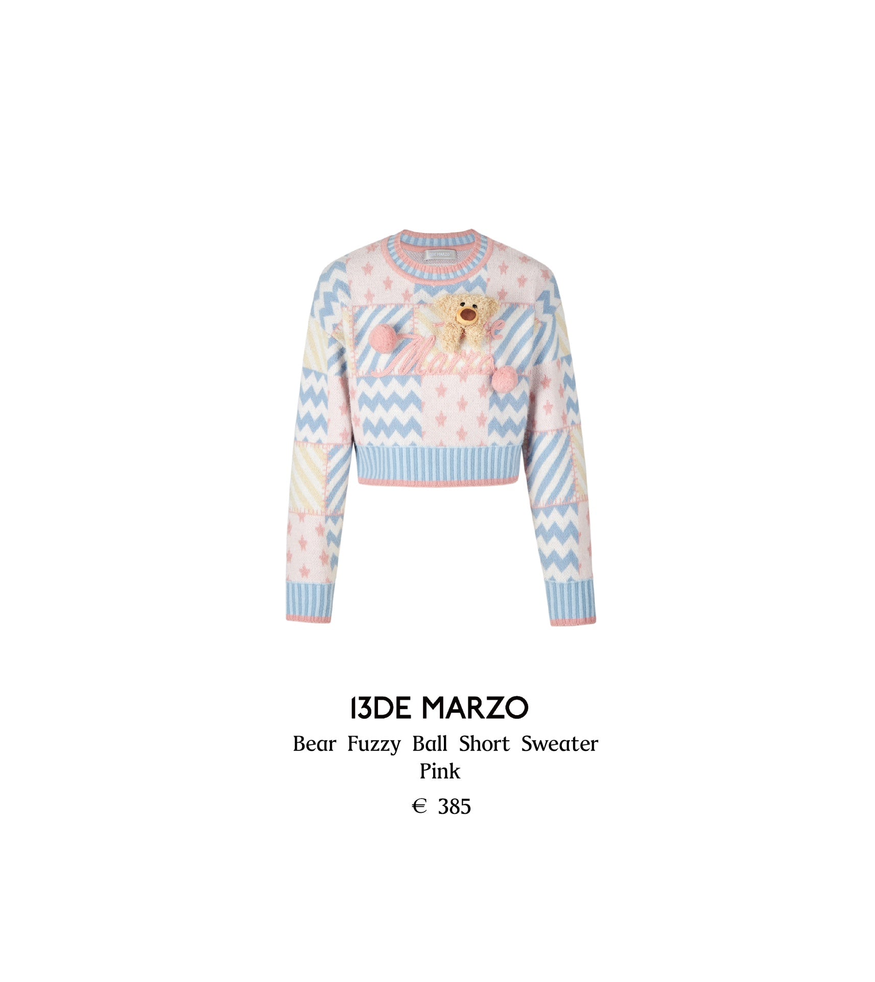 13DE MARZO Bear Fuzzy Ball Short Sweater