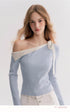 Kroche Off-Shoulder Slim-Fit Long-Sleeve Knit Top(2 color)