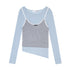 AsGony ASG25661&ASG25644 Fake two-piece contrasting knitted base top + skirt set