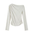 SOMESOWE S2508260 Velvet plaid diagonal shoulder pleated long sleeved T-shirt