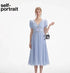 Self-Portrait BLUE METALLIC CHIFFON MIDI DRESS