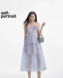 Self-Portrait BLUE ORGANZA LACE MIDI DRESS
