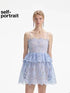Self-Portrait BLUE ORGANZA LACE MINI DRESS