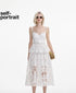 Self-Portrait WHITE COTTON LACE TIERED MIDI DRESS