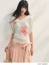 AsGony ASG25236 Flower V-neck waist cinched short sleeved T-shirt (2color)