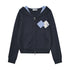 AsGony ASG25351&ASG25352 Grid patchwork applique zip-up hoodie + pants set