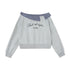 AsGony ASG25422 Off shoulder slanted shoulder patchwork printed embroidered hoodie