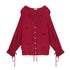 AsGony ASG25452 V-neck flower tie wool blend knitted cardigan