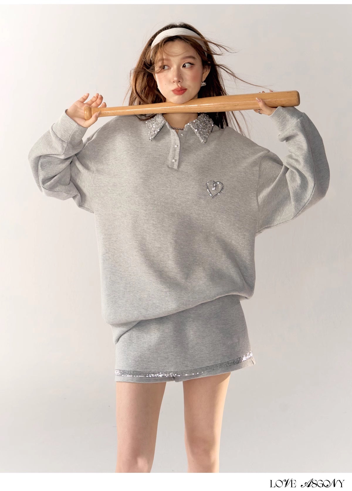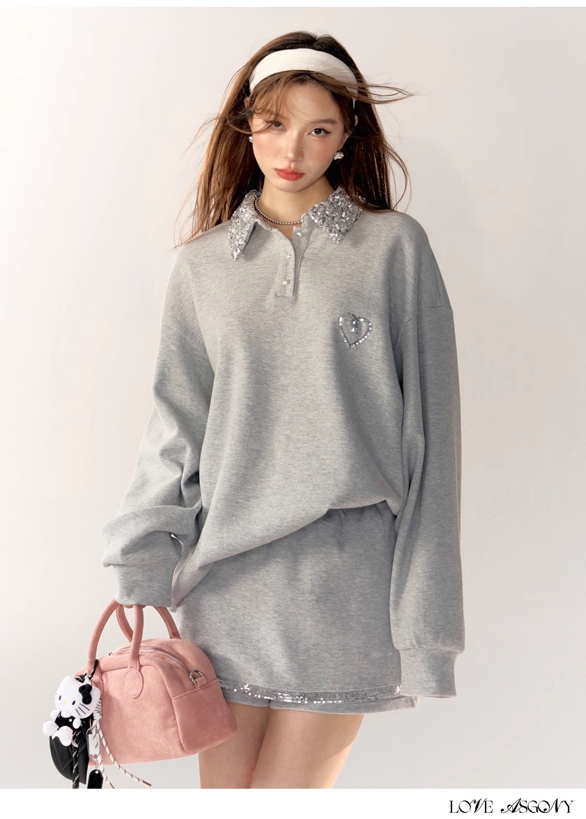 AsGony Sequin Collar Grey Set(SEPERATE)