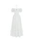 The Moonlight Corset Dress is crafted from soft, textured cotton fabric, offering the perfect blend of comfort and sophistication. Design with voluminous puff sleeves creates a dreamy, romantic vibe, while the corset-style bodice cinches the waist for a flattering, feminine silhouette.