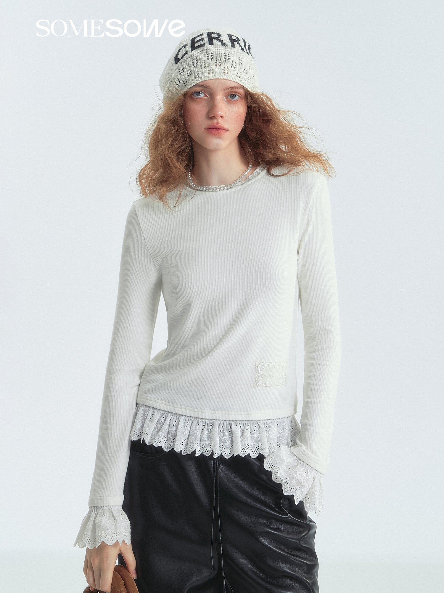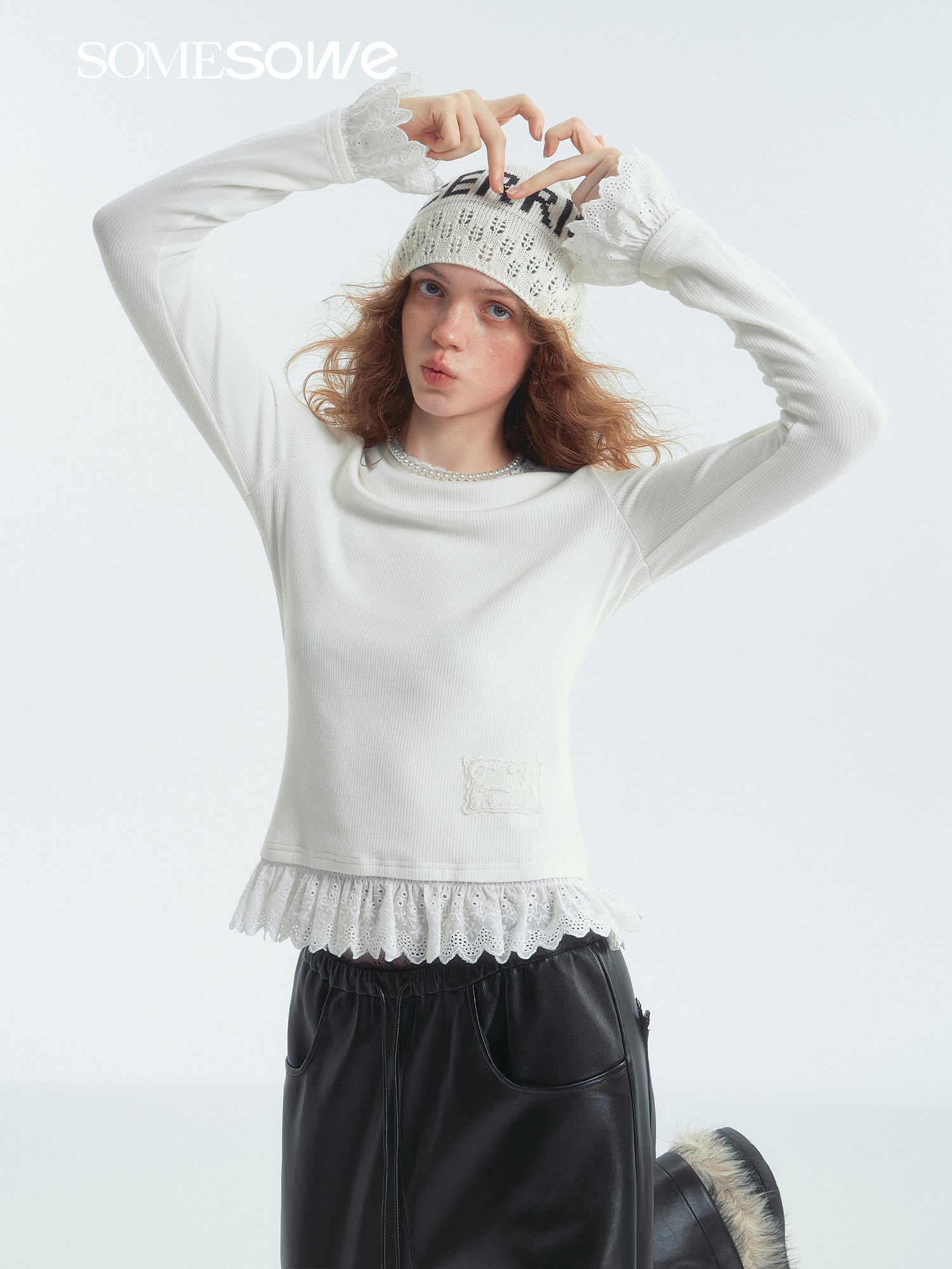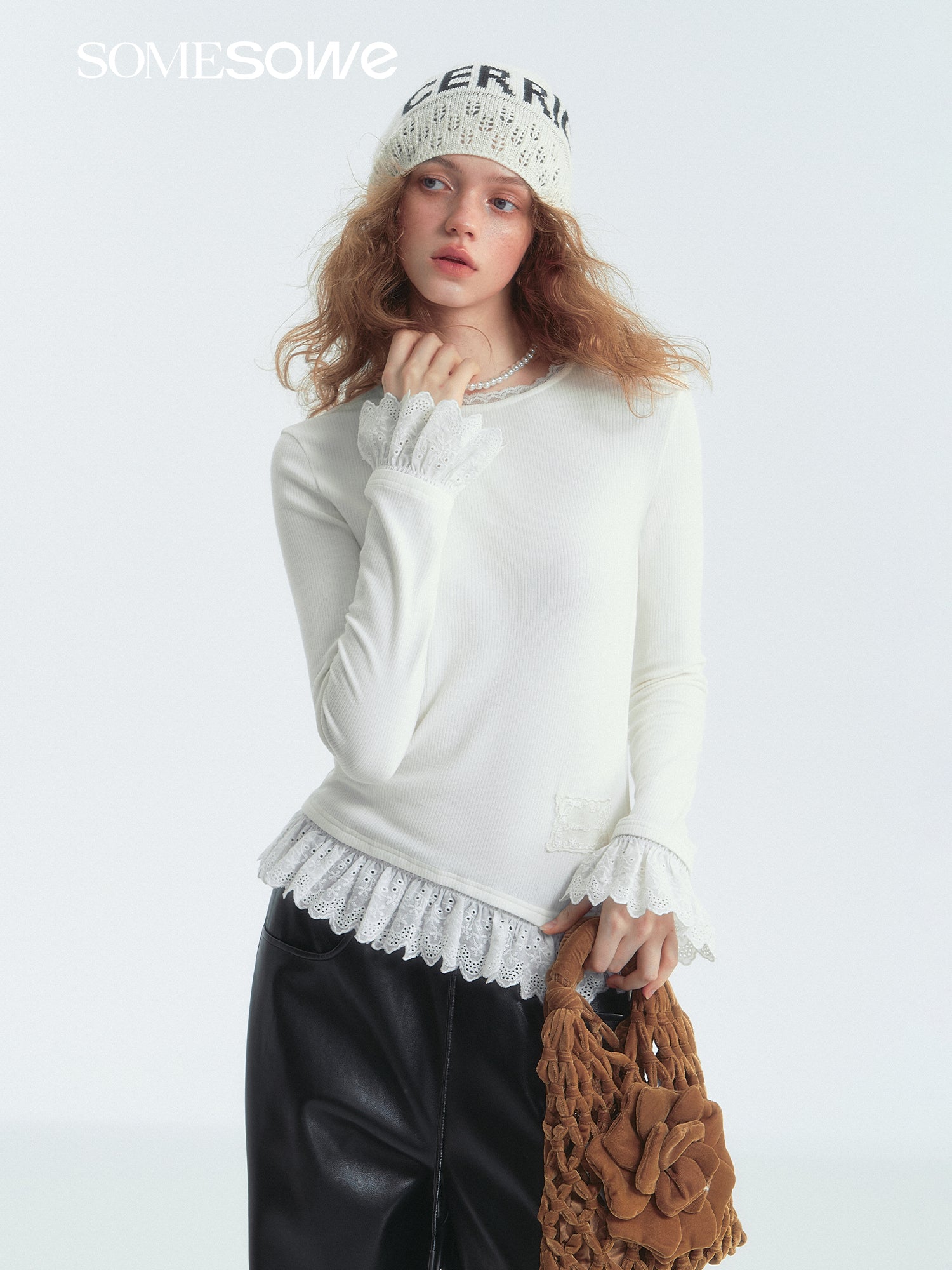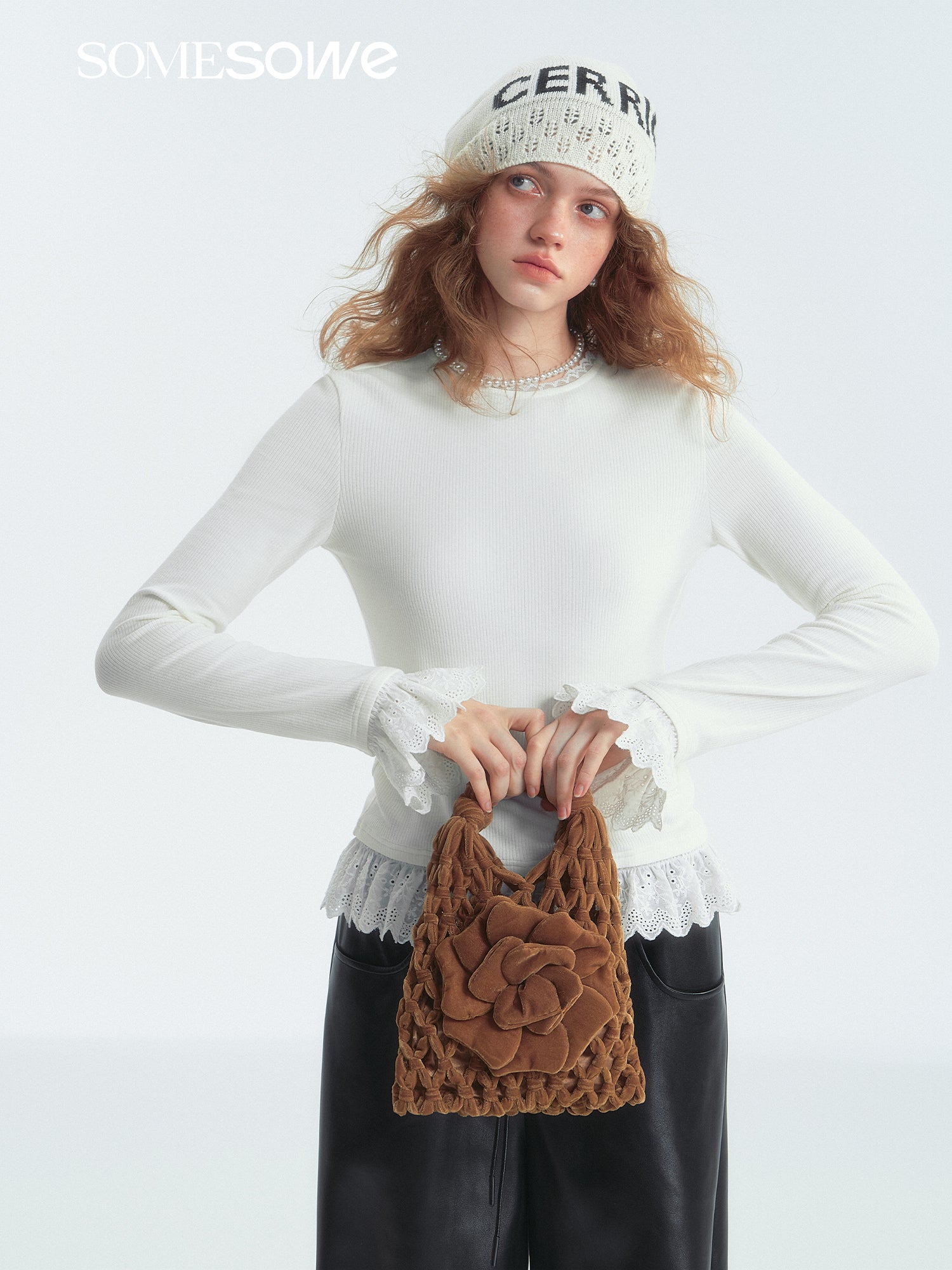 SOMESOWE S2407301 Petal lace velvet long sleeve T-shirt