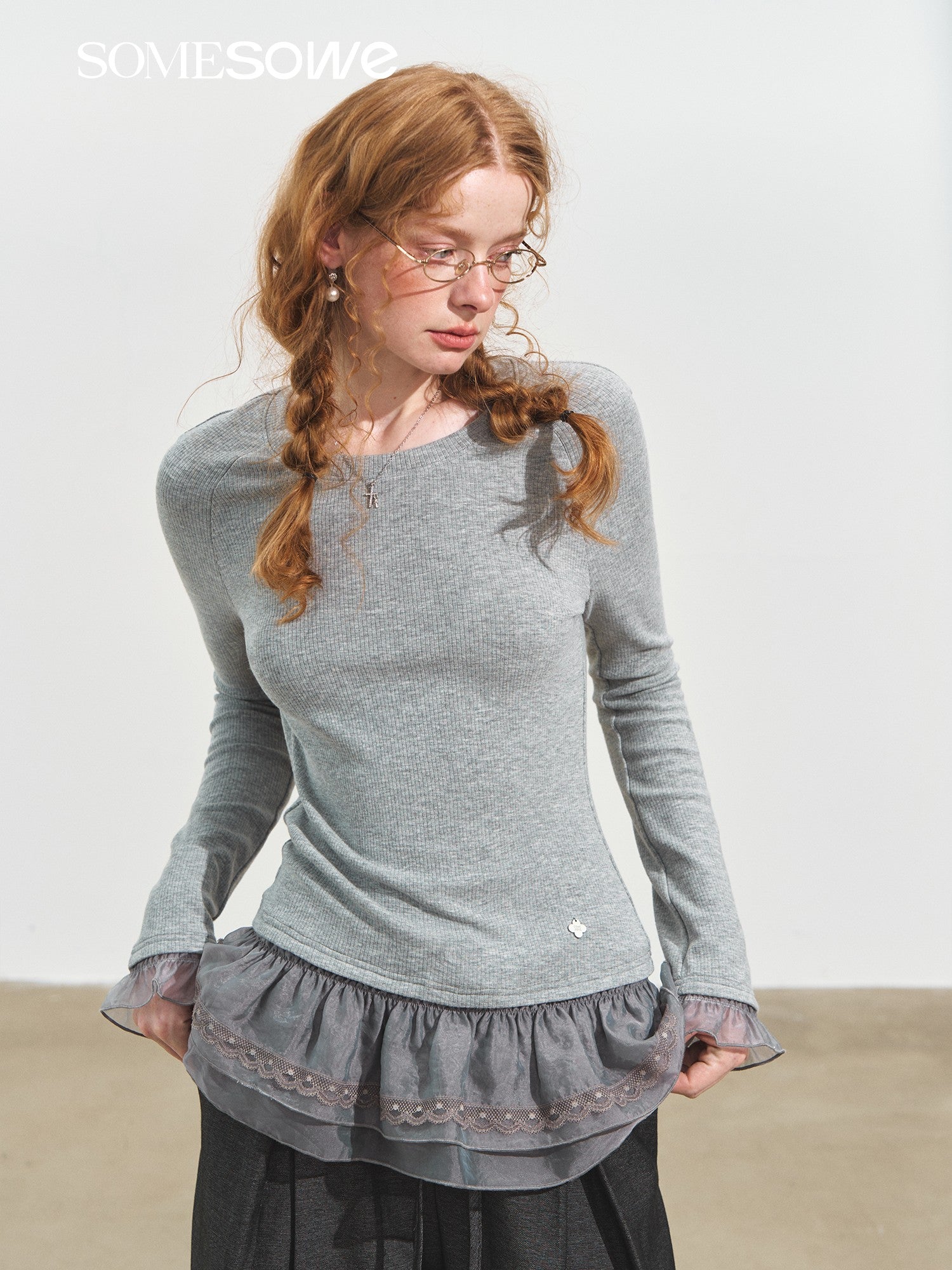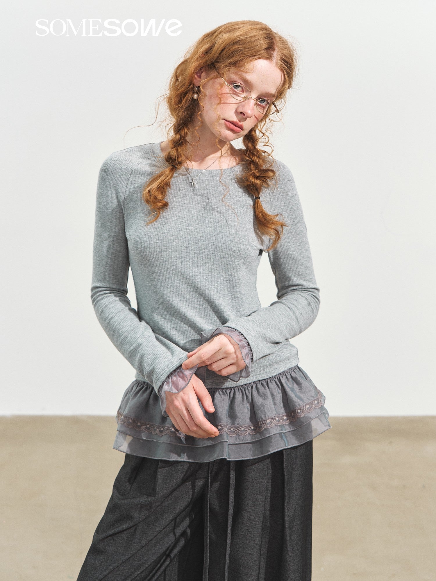 SOMESOWE S2508236 Double layered lace raglan warm velvet top
