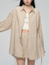 AsGony ASG25059&ASG25060 Lace up casual checkered shirt +skirt set (2color)