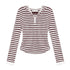 AsGony ASG25299 Striped lace slim fit long sleeved top