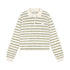AsGony ASG25391 Striped lapel hem drawstring polo knit base top