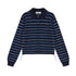 AsGony ASG25391 Striped lapel hem drawstring polo knit base top