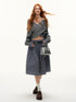 AsGony ASG25411 Off shoulder checkered spliced cross sweater