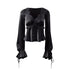 JELLOJELLO Acetate lace patchwork drawstring cuff top