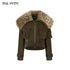 VIA PITTI VIADC584 Leopard print fur collar waist cinching jacket