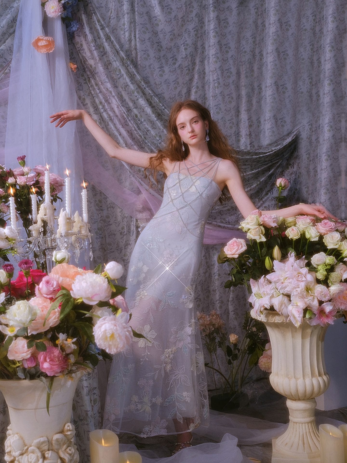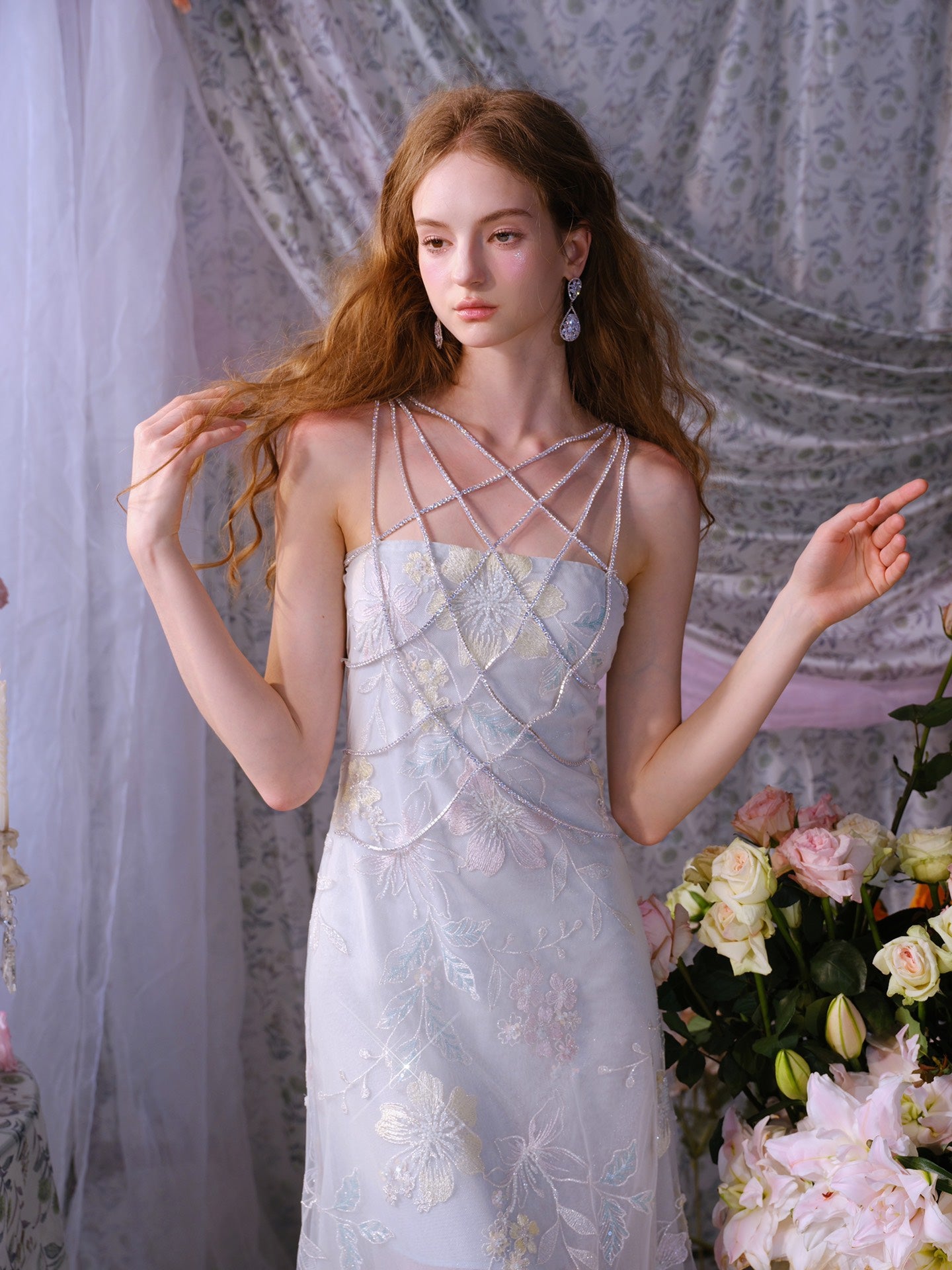 Wardrobes by chen Beaded Rhinestone Chain Embellished Dress