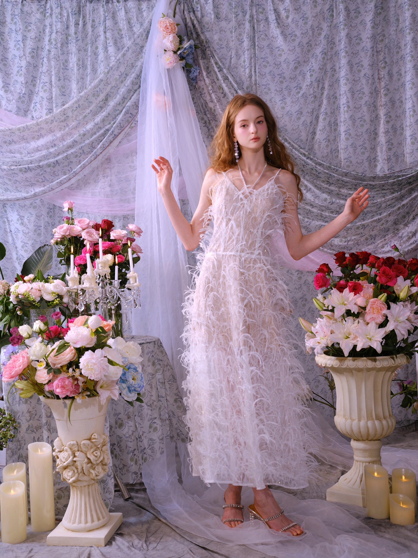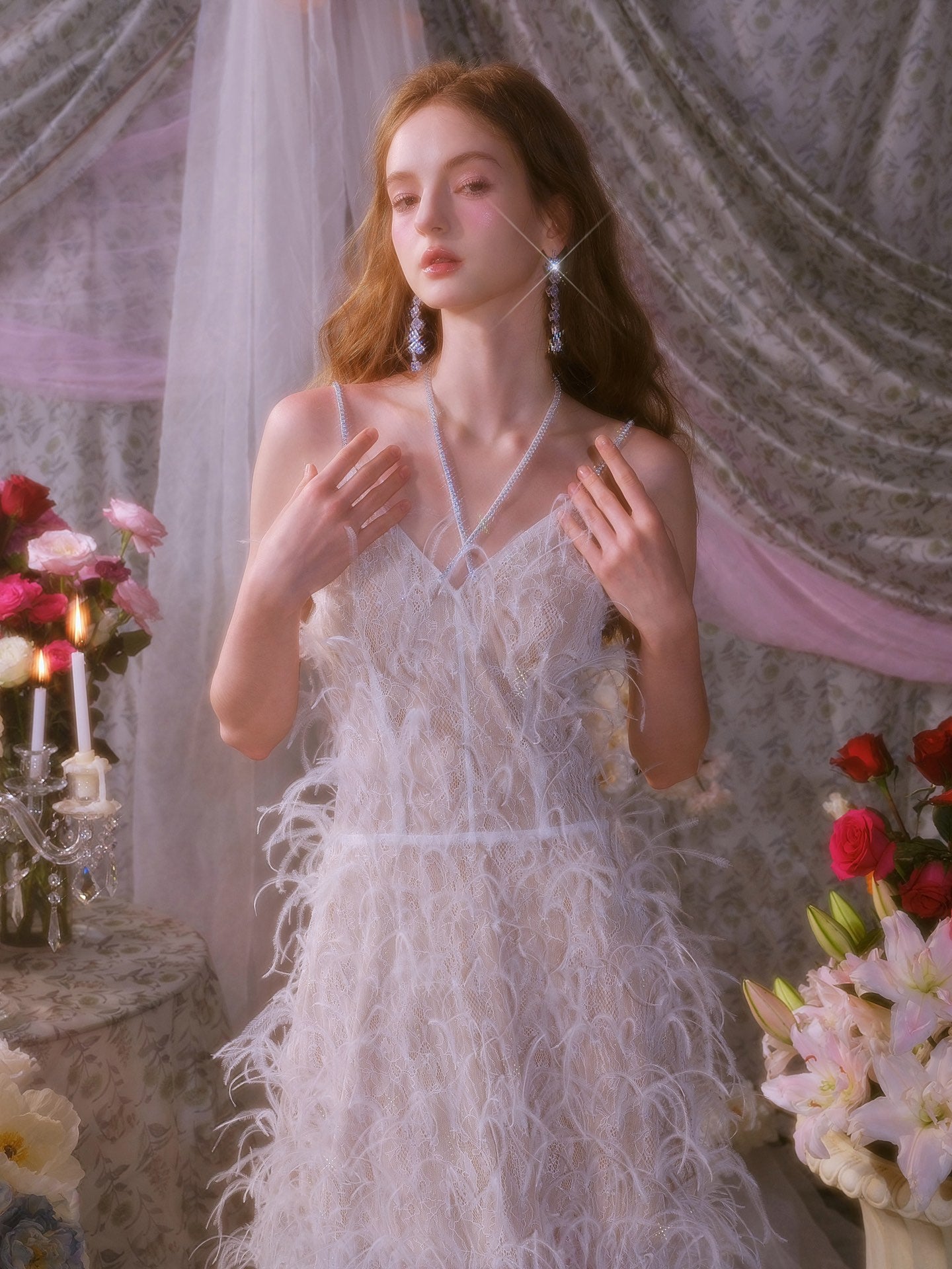 Wardrobes by chen Dazzling Dreamy Lace Handmade Feather Dress