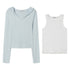 AsGony ASG25066 Lace patchwork two piece slim fit base top