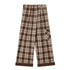 AsGony ASG25629 Elastic plaid wide leg casual pants