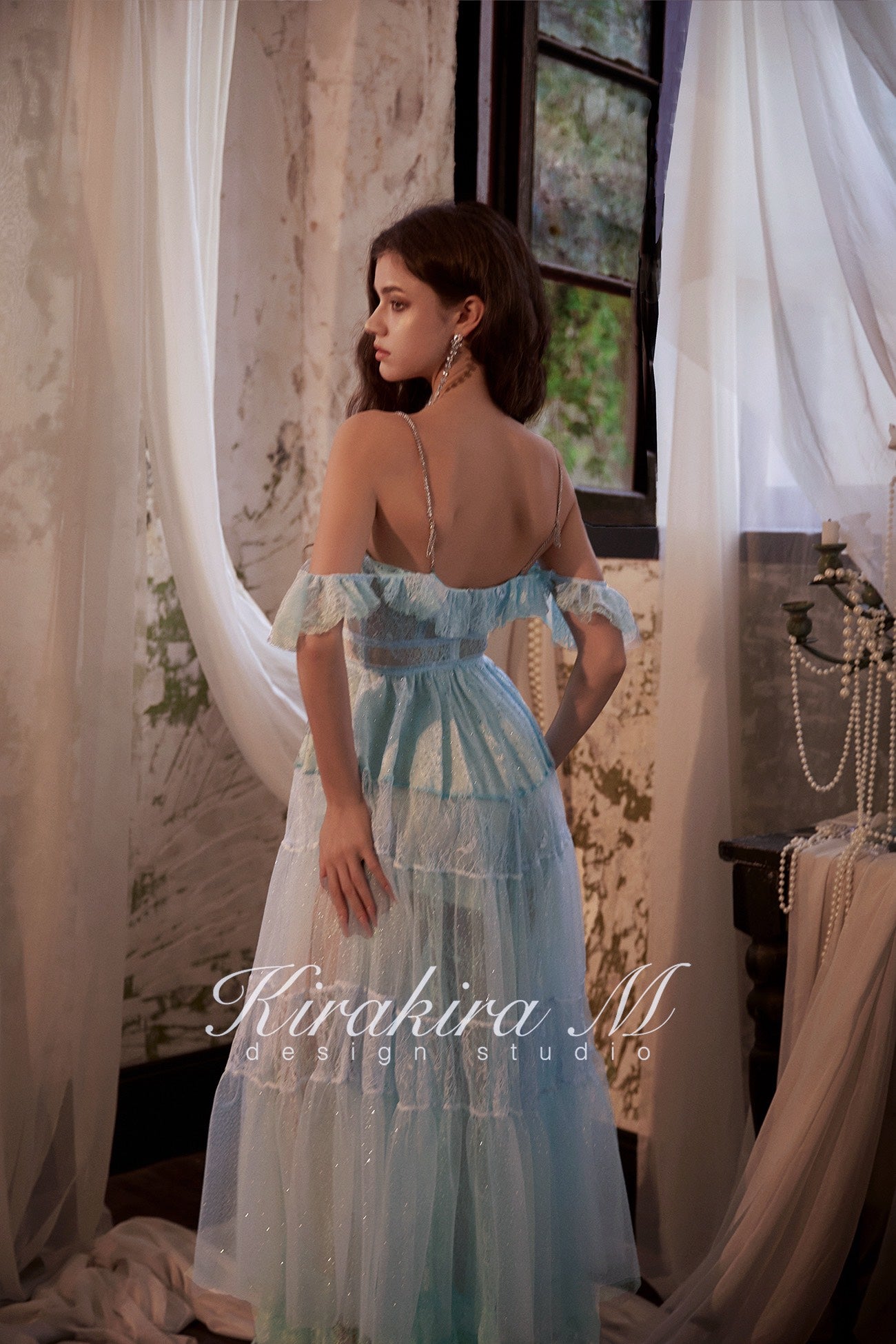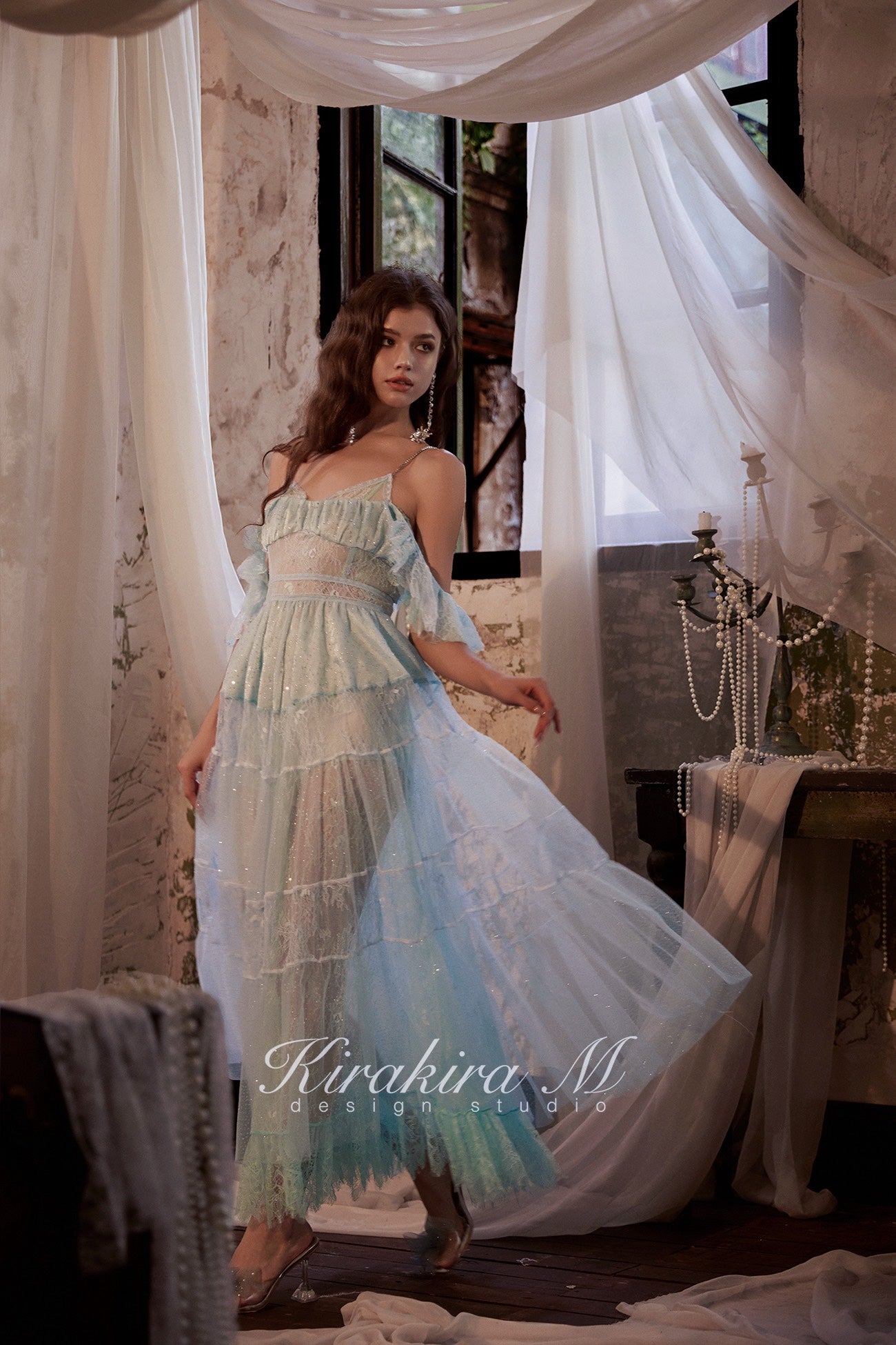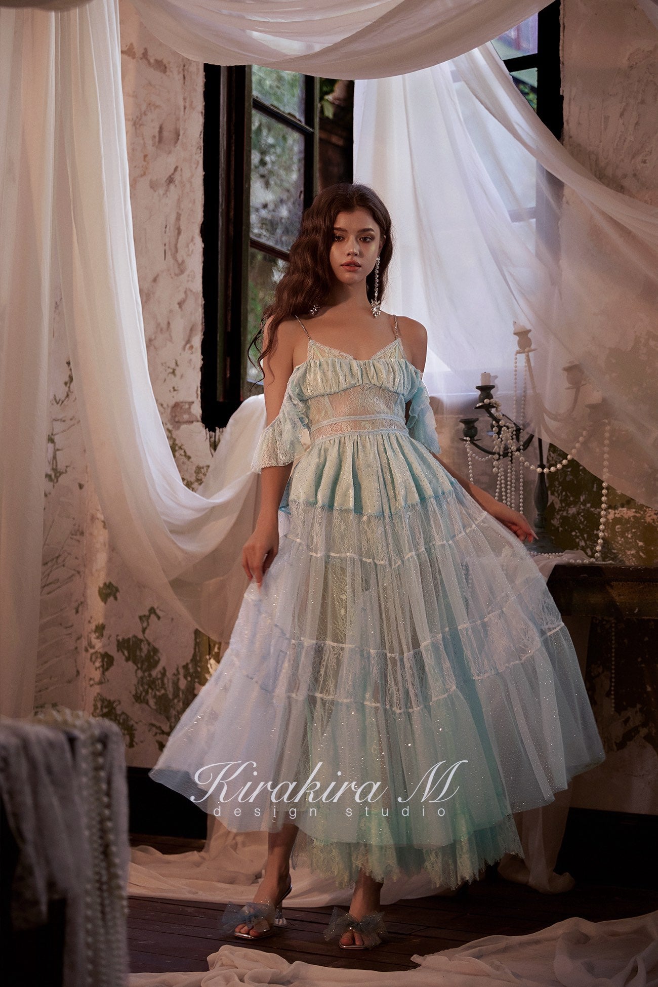 Kirakira.M Rhinestone Embellished Lace Layered Dress(with pants)